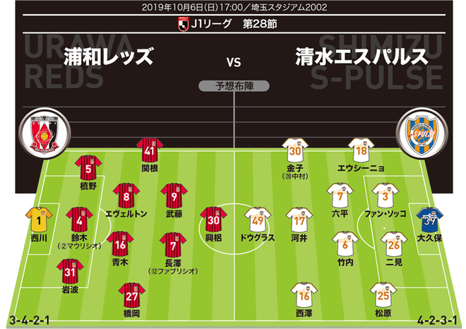 J1展望 浦和 清水 勝点3差の直接対決 Aclで完封勝利の浦和が 前節6ゴールの好調清水を迎え撃つ サッカーダイジェストweb