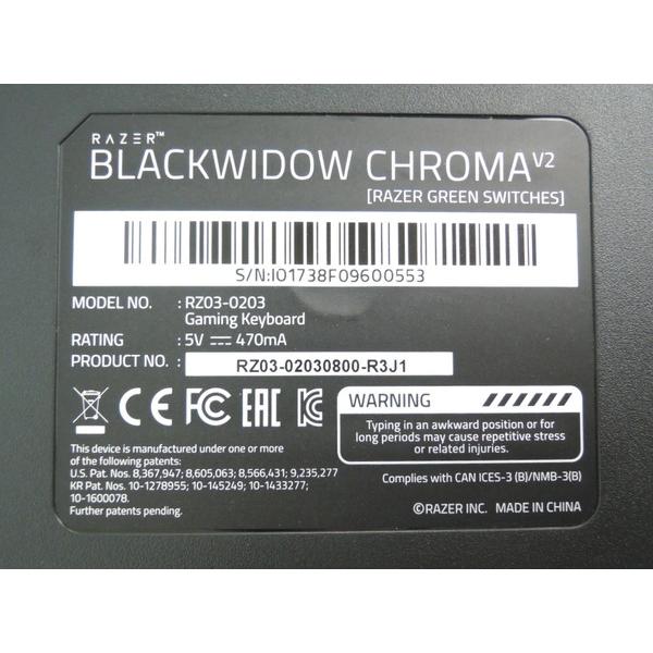 Razer レイザー Blackwidow Chroma V2 Jp ブラックウィドウ クローマ Grean Switch 緑軸 Rz03 R3j1 U8115 の落札情報詳細 ヤフオク落札価格情報 オークフリー スマートフォン版